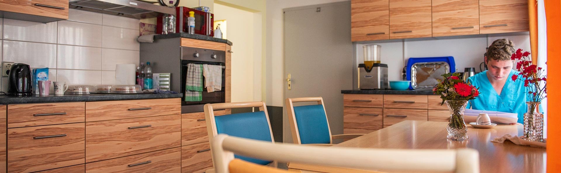 Leben wie in einer Wohngemeinschaft, mit eigenem Zimmer für die nötige Privatsphäre und einem gemeinsamen Wohnraum und einer Küche wenn Du Gesellschaft möchtest, und dazu rund um die Uhr Betreuer oder Pflegekräfte vor Ort – das ist unsere WG in der Behmenstraße.
